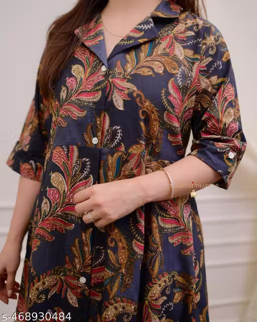 Elastic waistband; Adjustable closure; Side slits. Care: hand wash separately, dry in shade.