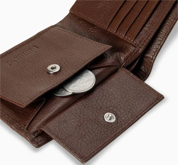 Warm Bifold Wallet in Genuine Leather. Stretch fabric.