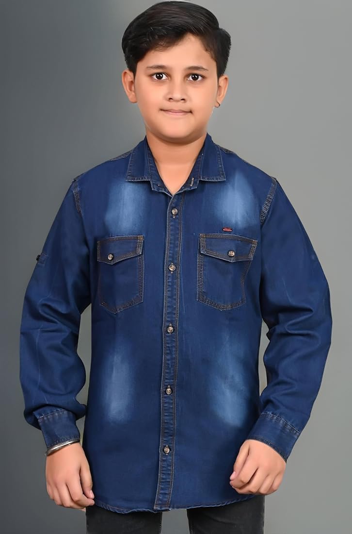 This boys’ denim shirt is designed with comfort and fun in mind, perfect for active little ones.