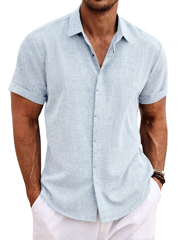 Crafted from breathable linen, this men’s casual shirt keeps you cool and stylish. Features a button-up front and relaxed fit for all-day comfort.