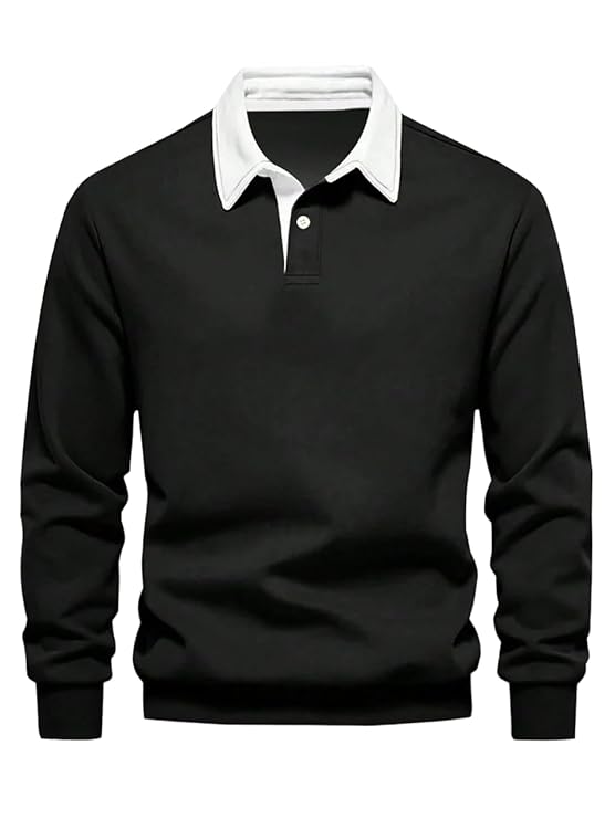 The classic polo collar and long sleeves add a refined touch, making this T-shirt suitable for casual outings, office wear, and semi-formal events. Its plain solid design allows easy pairing with jeans, chinos, or shorts for a polished and effortless look.