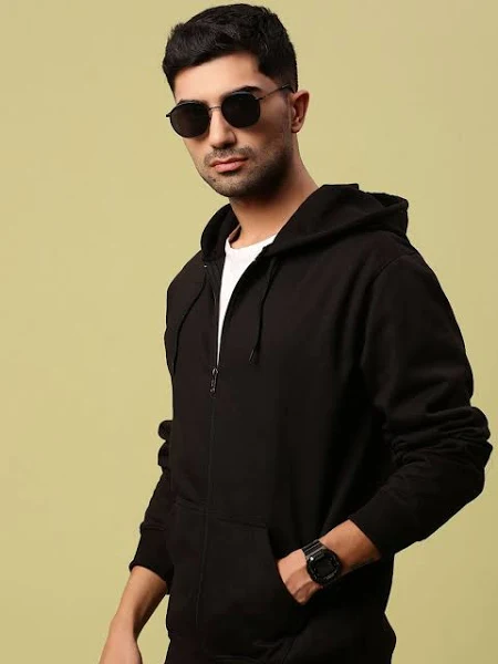 Everyday-ready Fleece Hoodie. Tag-free neck. Metal buckle strap.