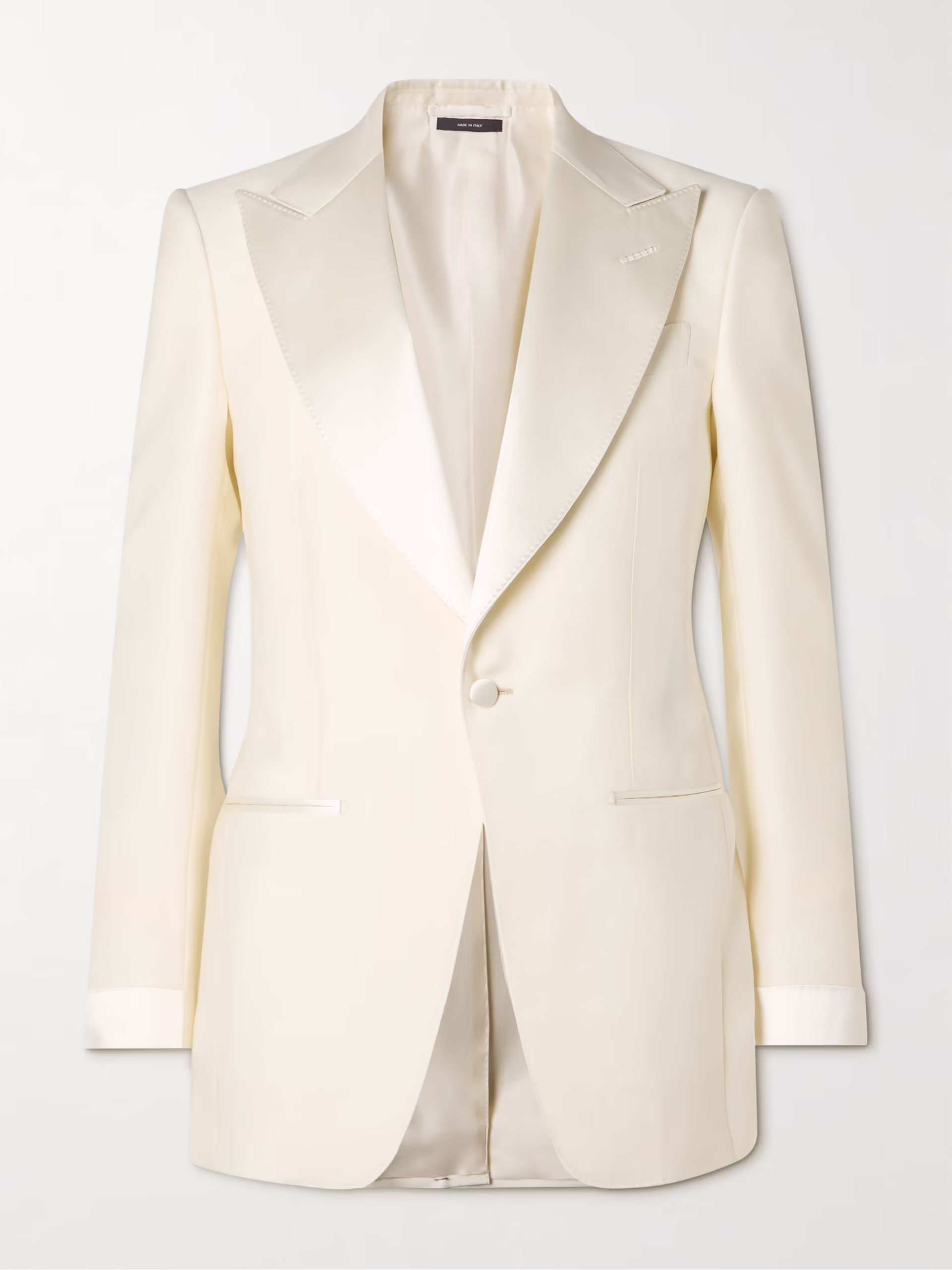 Two-piece; half-canvas; pick stitching. Dry clean.