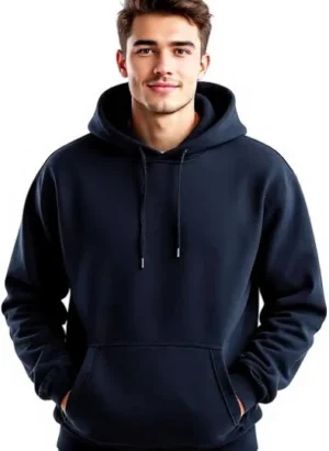 Double-stitched hem; Kangaroo pocket; Ribbed collar. Care: wash cold, do not bleach, dry in shade.